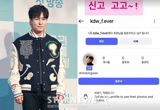 공개된 사진 속에는 김동완의 SNS를 사칭한 계정이 담겼다. 프로필 사진은 물론 아이디까지 비슷하게 만들어 김동완이 주의를 당부했다.
