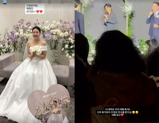 앞서 14기 옥순은 지난 1월 직접 품절녀 대열에 합류했다고 알리고 "드디어 제 인생이 완전해졌습니다"라고 소감을 전하며 "신부가 축가 불렀다. 맨날 붙어있는 신랑 모르게 준비하기 너무 힘들었음. 더 대박은 우리 아빠 축가! 신부 축가보다 더 많은 찬사를 받으심. 아빠 최고"라고 밝혔다. 이와 함께 14기 옥순은 남편을 향해서도 "우리 이 약속 평생 잊지 말자. 내 인생에 나타나줘서 고마워"라고 전했다.