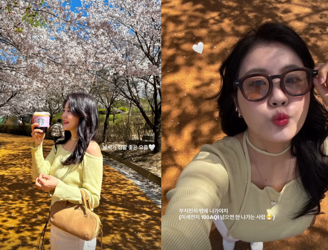 이와 함께 14기 옥순은 "날씨가 정말 좋은 요즘. 부지런히 밖에 나가야지. 미세먼지 100AQI 넘으면 안 나가는 사람"이라며 "내일은 비가 온대요. 꽃잎 떨어지면 안돼"라고 밝혔다.