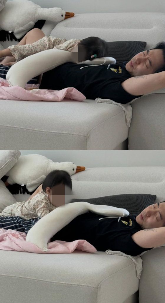 박유환은 9일 자신의 SNS에 "여러분 덕분에 행복한 7년이었다. 그리고 아빠 잘 때 배꼽 파는 리아"라는 글과 함께 사진 여러 장을 게재했다.
