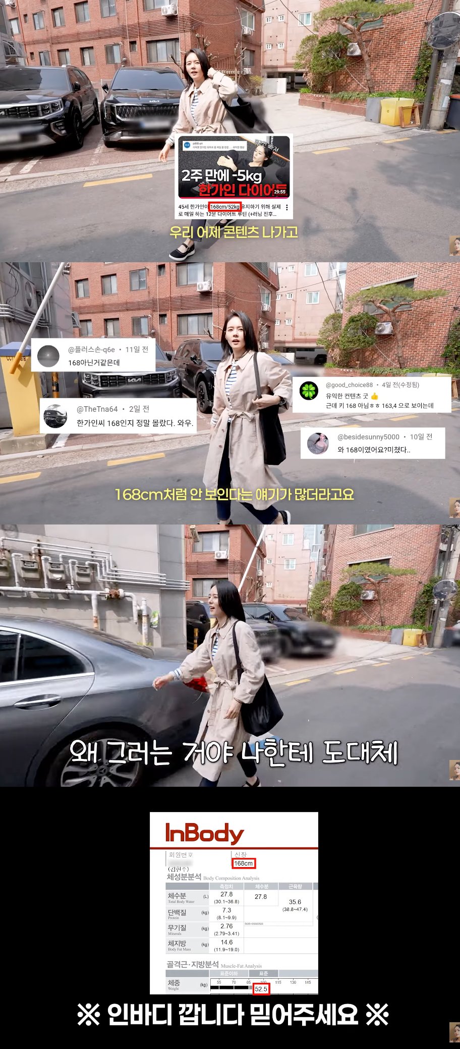 배우 한가인이 키에 대한 의심에 해명하며 인바디 결과를 공개했다.