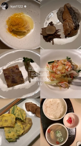 송혜교는 10일 자신의 개인계정에 맛집에서 먹은 음식 사진을 게재했다. 이와 함께 송혜교는 다비치 강민경, 이해리를 태그로 달아 함께 했음을 알렸다.