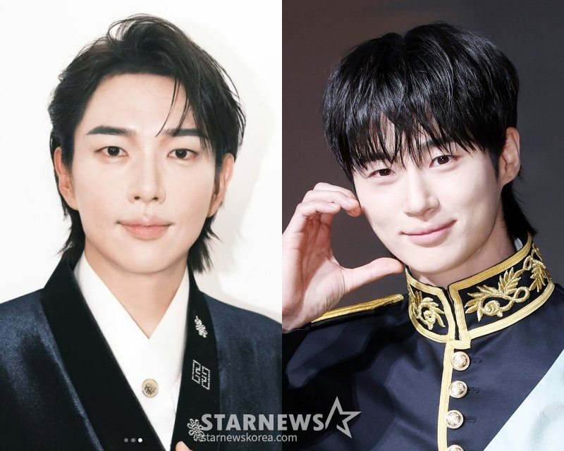 사진 속 장성규는 변우석으로 완벽하게 빙의하려는 노력을 보여줬다. 장성규는 어두운 톤의 자켓에 은색 자수가 수놓아진 화려한 무늬의 상의를 입고, 흰색 셔츠를 매치해 고풍스러운 분위기를 연출했다. 하지만 변우석과 하나도 닮지 않은 비주얼에 보는 이들을 폭소케 만들었다.