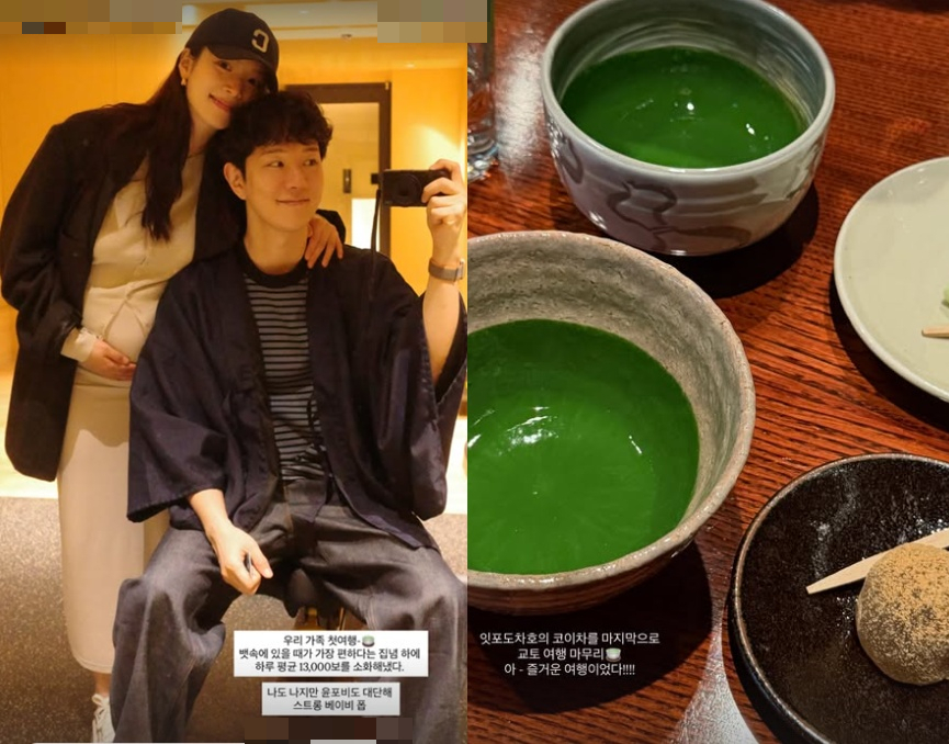 김지영은 11일 만삭 상태로 윤수영 대표와 함께 찍은 셀카를 공개하고 "우리 가족 첫 여행. 뱃속에 있을 때가 가장 편하다는 집념 하에 하루 평균 1만3000보를 소화해냈다. 나도 나지만 윤포비도 대단해 스트롱 베이비 풉"이라며 "교토 여행 마무리 아 즐거운 여행이었다"라고 밝혔다.