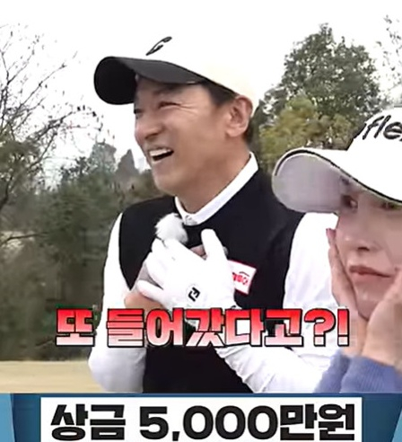 홍인규는 "골프 방송 나갈 때마다 (홀인원) 상금 타는 건 형이 처음 아니냐"라고 거듭 얘기했다.