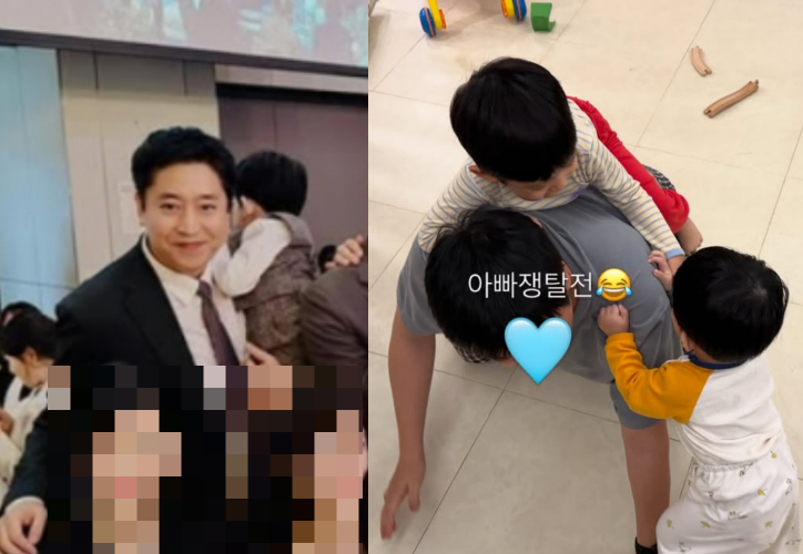 공개된 사진에는 에릭이 두 아들과 함께 장난을 치며 일상을 보내고 있다.