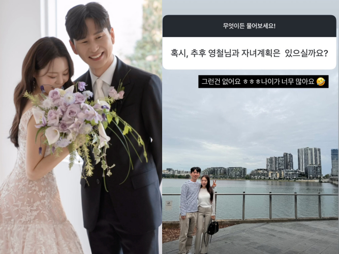 28기 영자는 "추후 영철님과 자녀 계획이 있느냐"라는 질문에 "그런 건 없다. 나이가 너무 많다"라고 답했다.