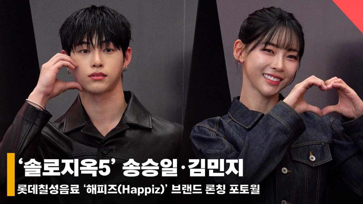 13일 오후 서울 영등포 타임스퀘어 1층 메인 광장에서 롯데칠성음료 '해피즈(Happiz)' 브랜드 론칭 행사가 열렸다. 이 행사에는 '솔로지옥5'에 출연했던 송승일과 김민지가 참석했다. 두 사람은 행사에서 포즈를 취하며 재회했다.