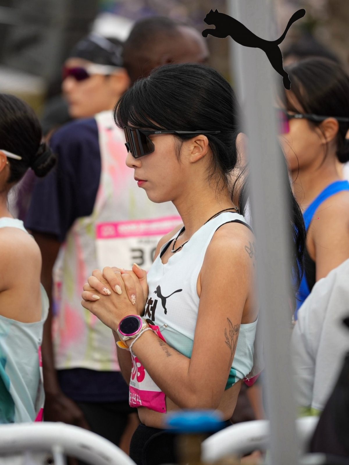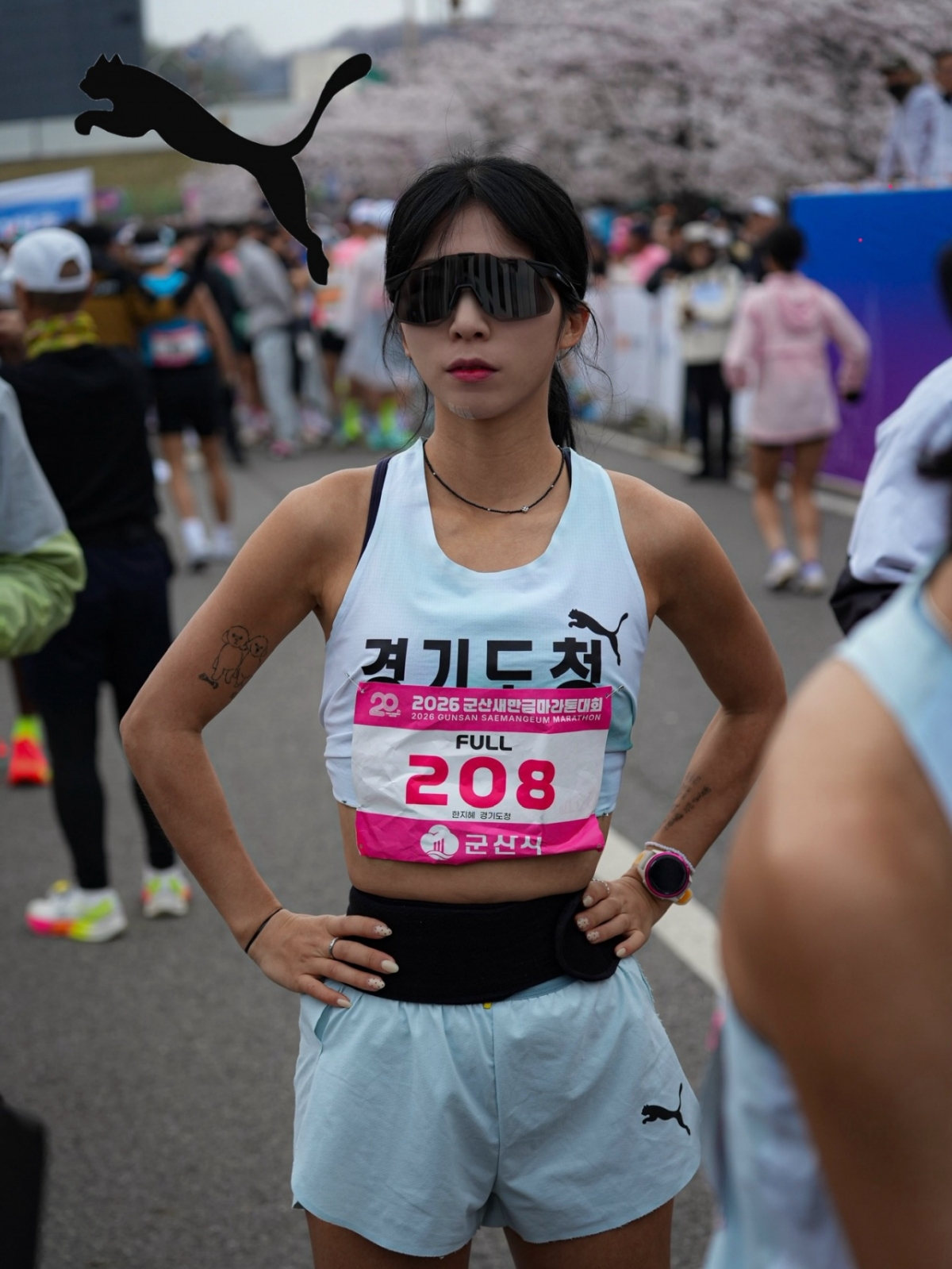 진태현은 14일 SNS를 통해 "아버지가 말아주는 우리 한지혜 선수의 새만금 마라톤 사진전. 동마 새만금 연속 3등 포디엄"이라며 관련 사진을 공개했다.
