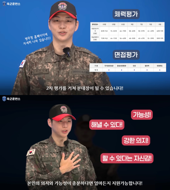 그는 "이런 분대장이 되기 위해서는 첫 번째, 병무청을 통해 지원하는 방법이 있다"고 육군훈련소 분대장 지원 방법을 설명했다.