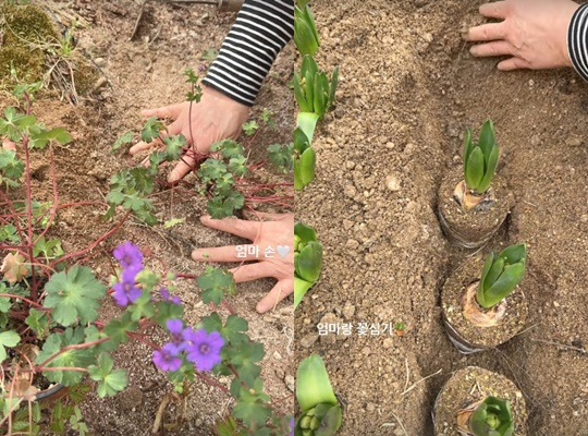 송혜교가 최근 엄마와 함께 꽃을 심으며 정원을 가꾸는 모습을 공개했던, 가운데 벌써 꽃이 핀 것으로 보인다.