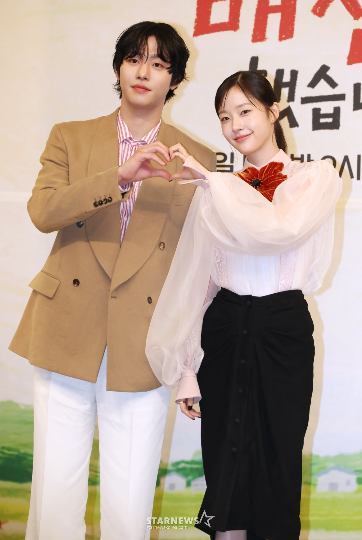 배우 안효섭, 채원빈이 15일 오후 서울 양천구 목동 SBS에서 진행된 SBS 수목드라마 '오늘도 매진했습니다' 제작발표회에 참석해 포즈를 취하고 있다. /2026.04.15