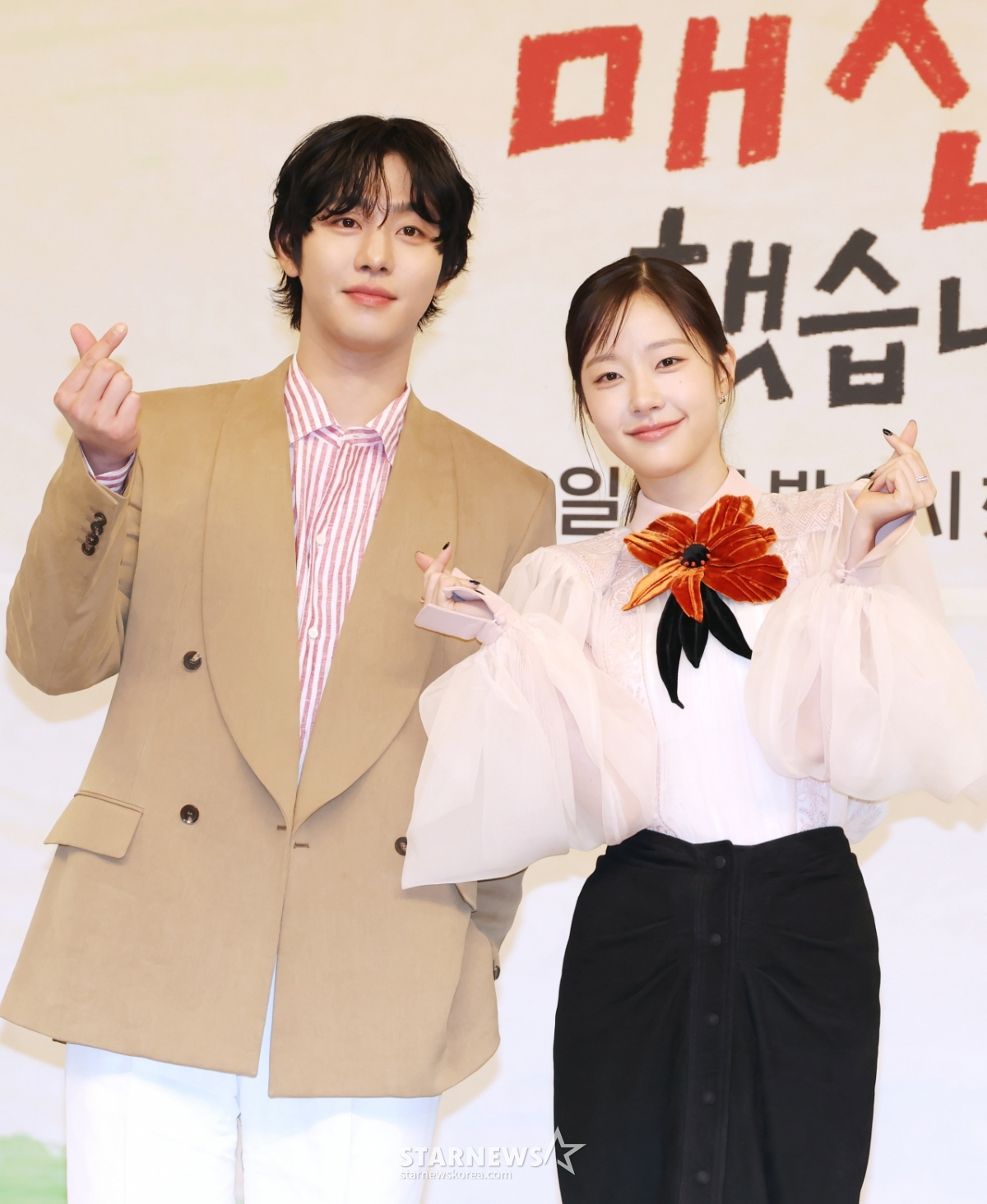 배우 안효섭, 채원빈이 15일 오후 서울 양천구 목동 SBS에서 진행된 SBS 수목드라마 '오늘도 매진했습니다' 제작발표회에 참석해 포즈를 취하고 있다. /2026.04.15
