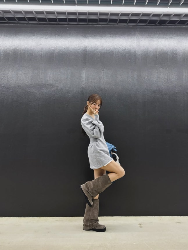 또한 짧은 길이의 원피스 임에도 군살 없이 슬림한 다리 라인을 자랑하며 시선을 사로잡고 있다.
