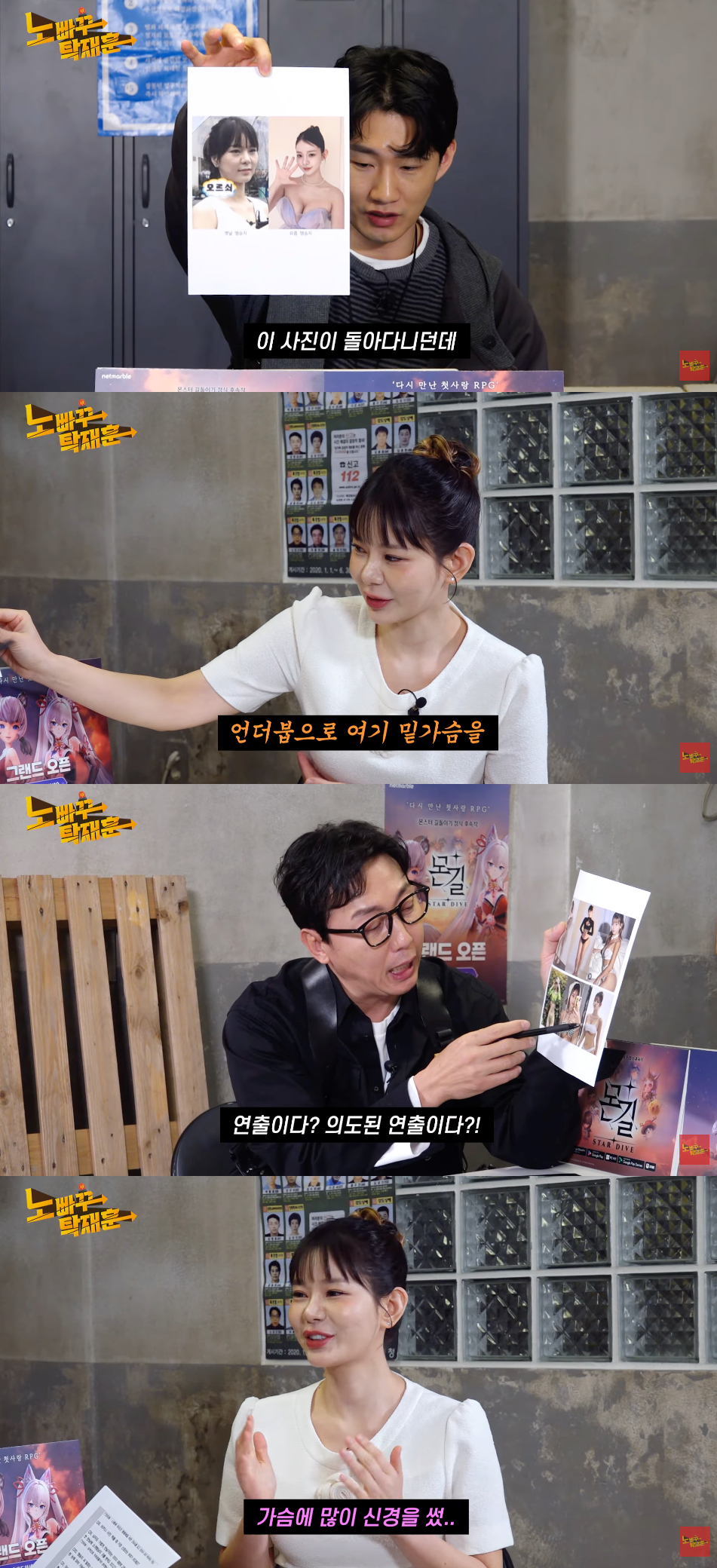 출연진들이 맹승지의 비키니 사진을 함께 본 가운데, 탁재훈은 한 사진을 보고 "누구 거를 빌려 입었냐"고 물었다. 이에 맹승지는 "언더붑이다"며 "일부러 밑가슴을 드러낸 것"이라 설명했다.