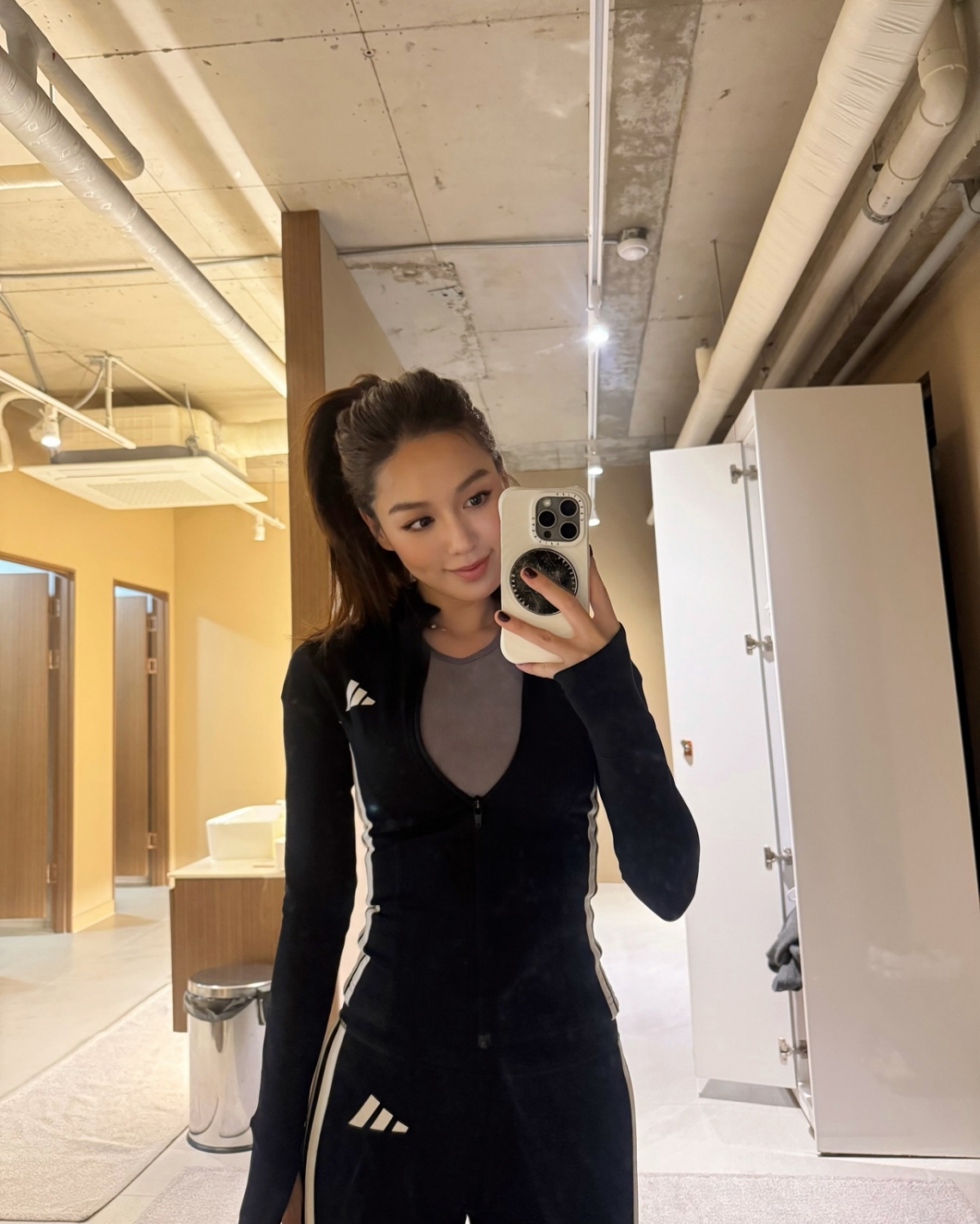 사진에는 김희정이 운동복을 입고 슬림핏을 뽐내고 있었다. 그는 탄탄하면서 슬림한 몸매를 자랑했다.