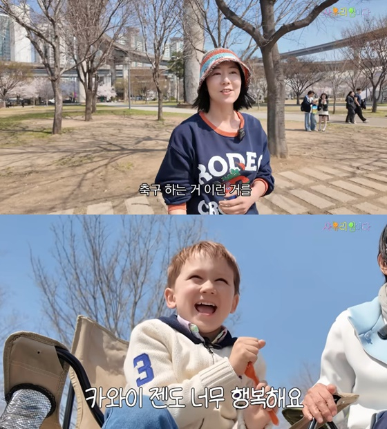 식사를 한 후 사유리 부녀는 젠과 축구를 하기도 했다. 사유리는 "(젠이) 아빠가 없잖아. 그래서 할아버지랑 이렇게 남자끼리 축구하는 추억을 더 만들고 싶다"고 전했다.