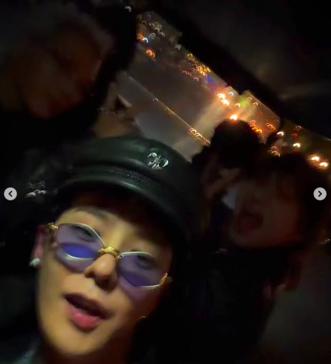 공개된 사진 속 지드래곤, 태양, 대성은 서로를 끌어안고 뜨거운 순간을 만끽하고 있다.