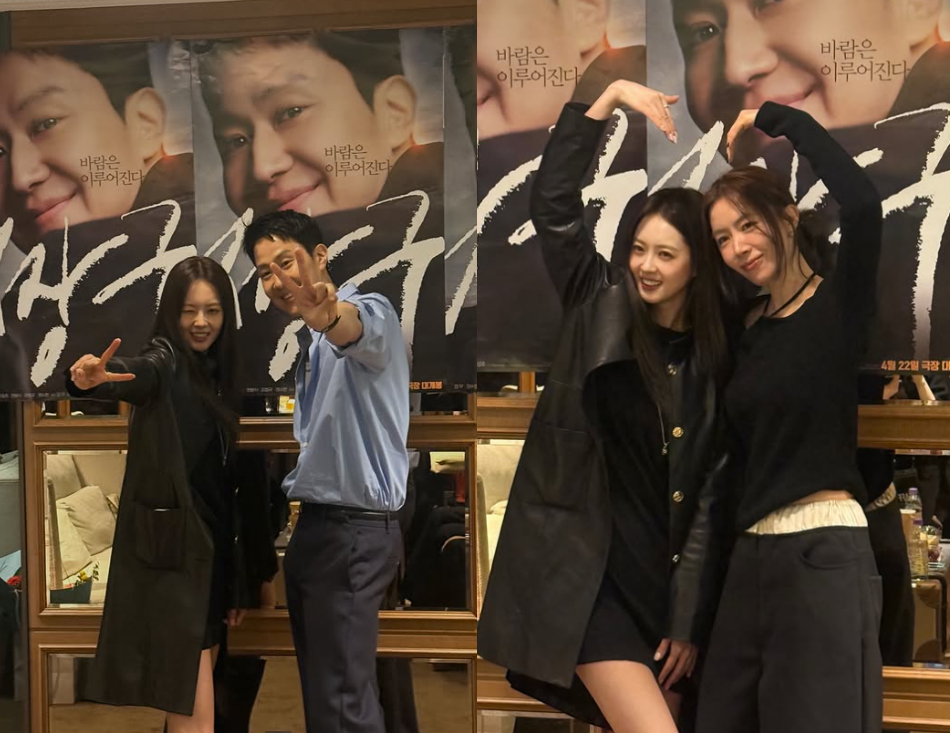 공개된 사진 속에는 정우, 정우의 아내이자 배우 김유미와 하트를 만들며 응원을 보내는 고아라의 모습이 담겼다.