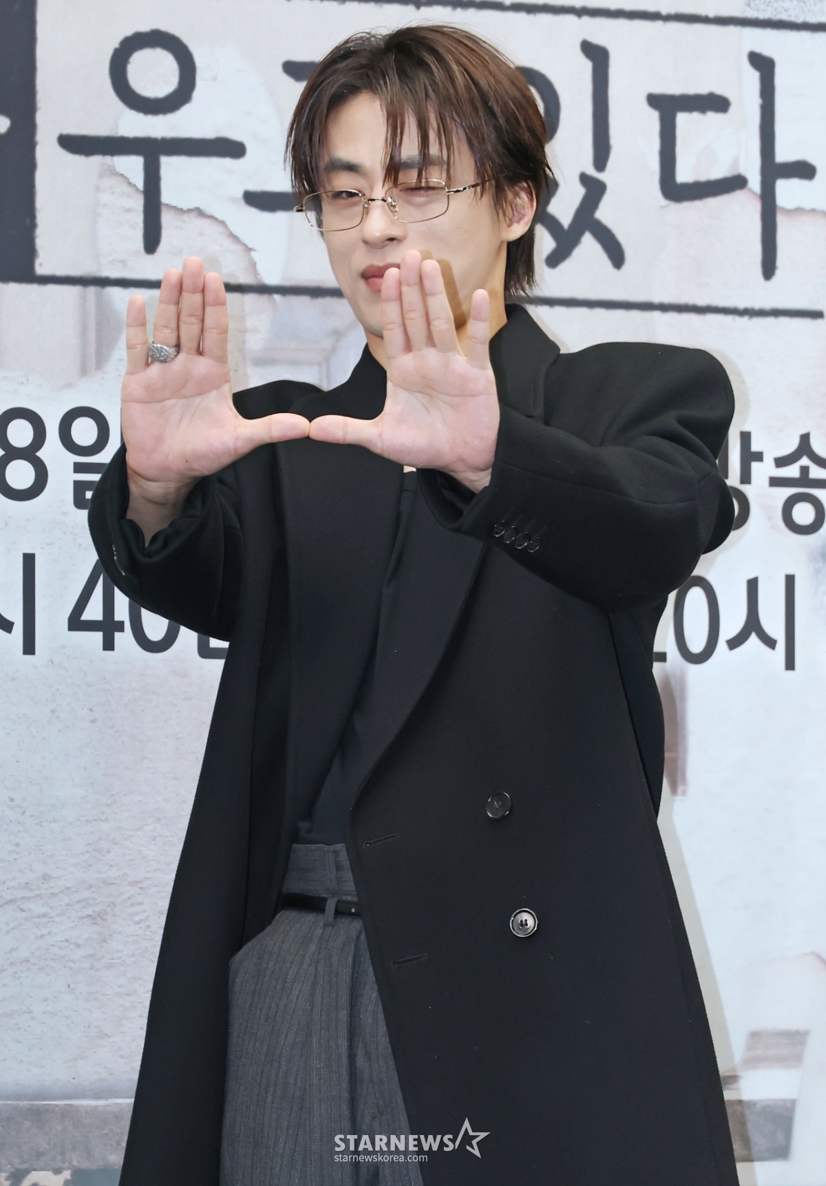 배우 구교환이 17일 오후 서울 마포구 상암동 스탠포드호텔에서 진행된 JTBC 토일드라마 '모두가 자신의 무가치함과 싸우고 있다' 제작발표회에 참석해 포즈를 취하고 있다.