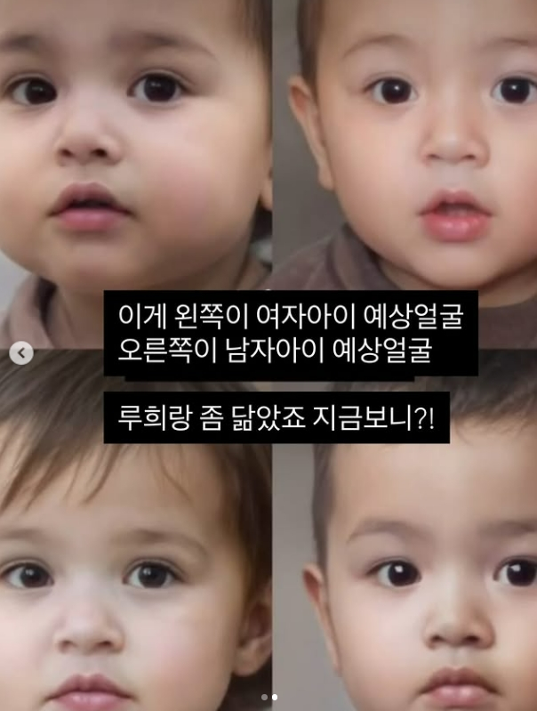 또한 아야네는 여자아이와 남자아이의 예상 얼굴 사진을 공개하며 "지금 보니 루희랑 좀 닮았죠"고 덧붙여 미소를 자아냈다.