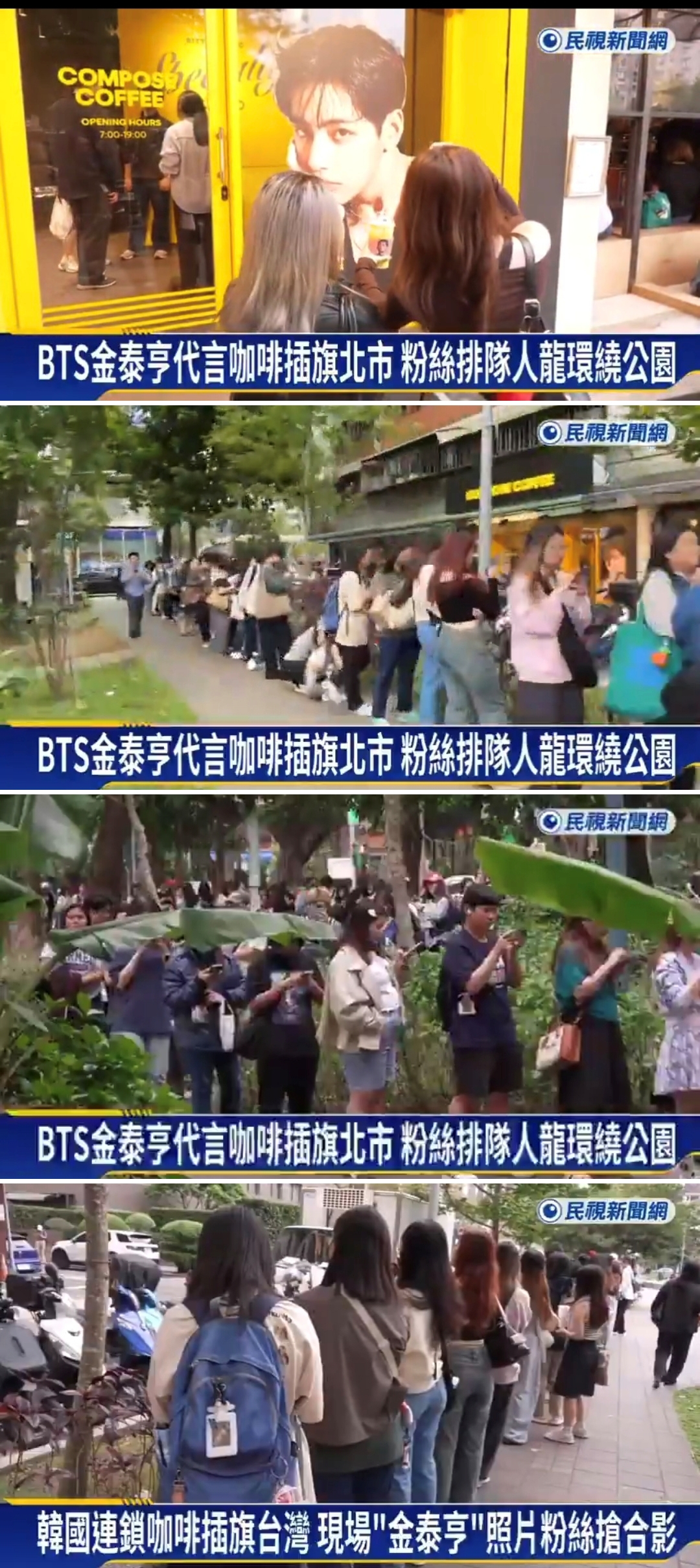 대만의 대표언론사인 민시신문망(FTV News)은 "BTS 김태형이 광고하는 커피브랜드가 타이베이에 진출..팬들의 줄이 공원을 둘러쌀 정도로 몰렸으며, '김태형' 포스터와 사진을 찍기 위해 팬들이 줄을 이었다"라고 보도했다. 매체가 보도한 영상에는 뷔의 포스터와 인증샷을 찍는 팬들과 끊임없이 이어지는 인파의 모습이 담겼다.