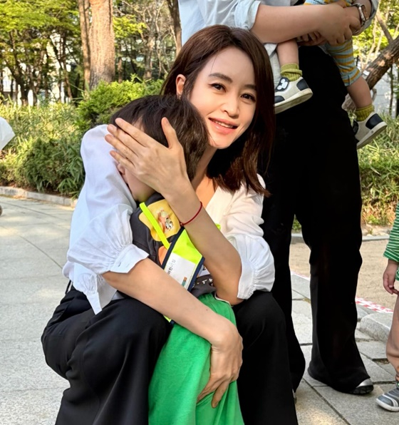 공개된 사진에는 김혜수가 아이를 품에 안고 있는 모습이 담겼다.