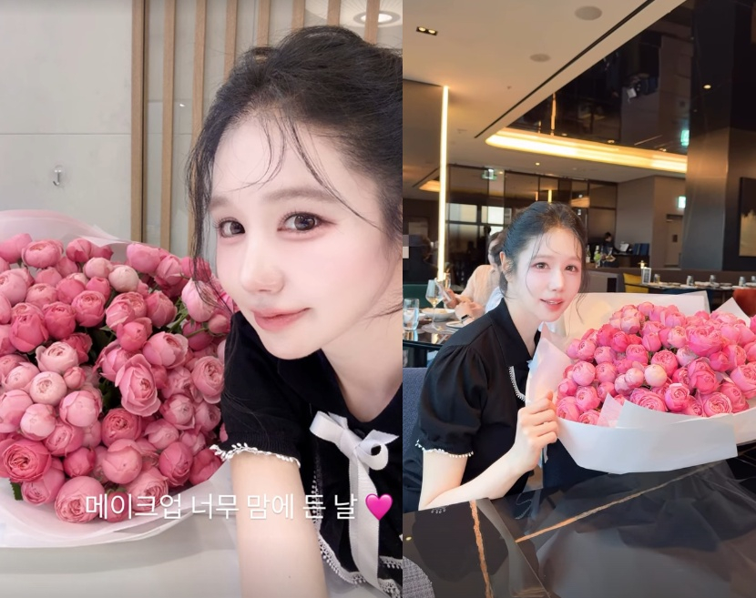 16기 옥순은 19일 "메이크업 너무 맘에 든 날"이라는 글과 꽃다발 선물을 받고 미소를 짓고 있는 사진을 공개했다.