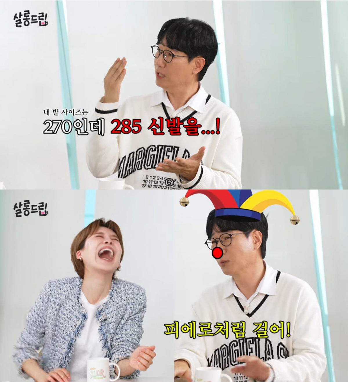 특히 지석진은 과거 파격적인 할인가에 매료돼 구매한 신발을 언급하며 "내 신발사이즈가 270인데 285사이즈 신발을 산적이 있다. 신으면 피에로처럼 걷는다"라고 말해 웃음을 자아냈다. 이어 "그래도 큰 폭으로 할인받아 샀을 때의 만족감이 정말 크다"라고 덧붙였다. 이에 장도연 역시 "맞다. 돈을 버는 것 같은 기분"이라며 고개를 끄덕였다.