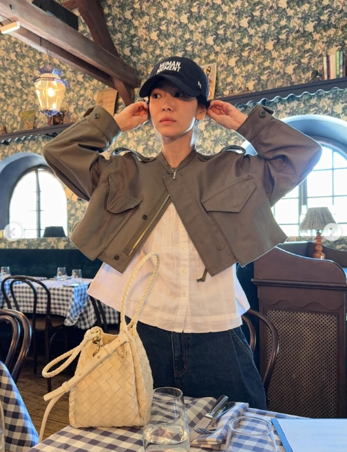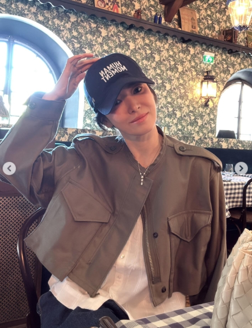 송혜교는 22일 자신의 개인계정에 프랑스 파리에서 스케줄을 소화하던 중 찍은 사진을 게재했다. 공개된 사진 속 송혜교는 일정 중 편안한 시간을 보내는 모습.