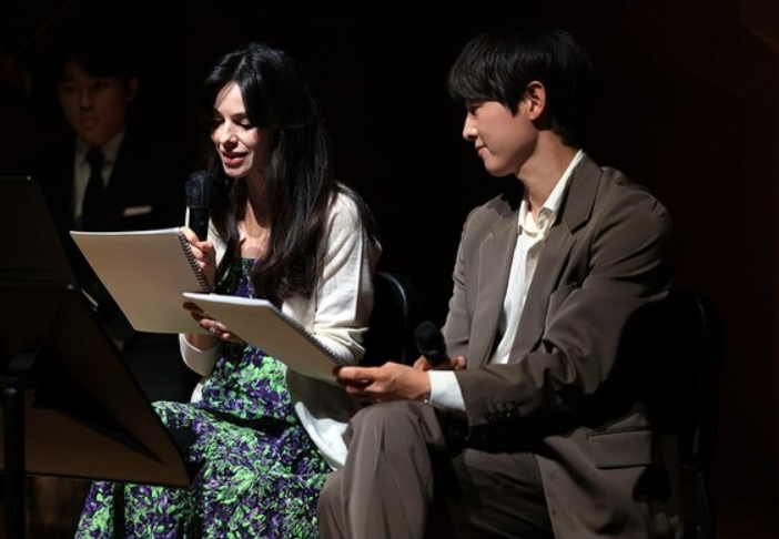 22일 가온솔로이스츠 측은 공식계정을 통해 송중기 케이티 부부가 무대 위에서 낭독하는 영상과 사진을 게재했다. 두 사람은 대에서 슈만 '어린이 정경'을 주제로 이야기를 전하는 모습이다. 케이티는 영어로, 송중기는 한글로 각각 낭독하며 따뜻한 마음을 전한다.
