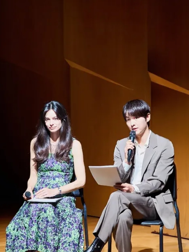 배우 송중기가 아내 케이티 루이스 사운더스와 첫 부부 동반 일정에 나난 가운데, 두 사람이 함께 무대에 선 공식 사진이 공개돼 눈길을 끈다.
