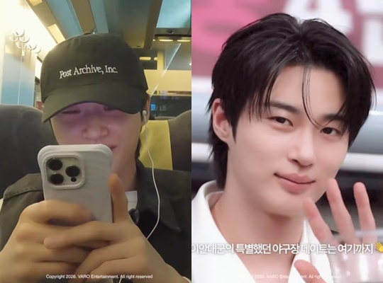 영상 속에는 변우석이 MBC 금토드라마 '21세기 대군부인' 촬영을 위해 KTX를 타는 모습이 담겼다. 변우석은 마스크도 쓰지 않고 KTX 안에서 이동했다. 그는 간식으로 밤빵을 먹고 휴대전화를 보고 밀린 잠을 자면서 여유있게 움직였다.