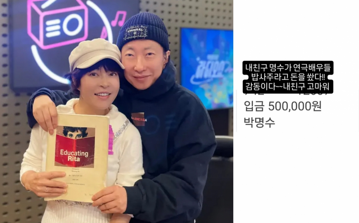조혜련은 22일 자신의 인스타그램에 "내 친구가 명수가 연극배우들 밥 사주라고 돈을 냈다"라는 글과 함께 입금 내역이 담긴 사진을 공개했다.