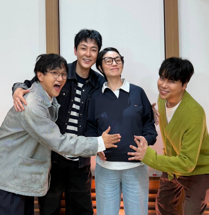안영미는 23일 자신의 인스타그램에 "딱콩이(첫째 태명) 때도 함께해줬던 오빠들"이라며 그룹 스윗소로우와 함께한 사진을 공개했다.