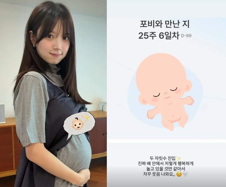 김지영은 23일 '포비와 만난지 25주 6일차. D-99"라고 적었다.
