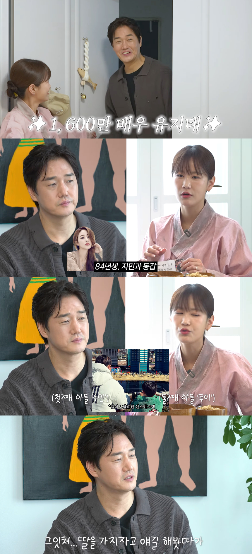 유지태는 아내에 대한 애정도 이어갔다. 그는 "효진이는 좀 다른 것 같다"며 "나에 대해 다 알고 있다. 편한 것 플러스 진짜 '찐 가족'이다"고 표현했다.