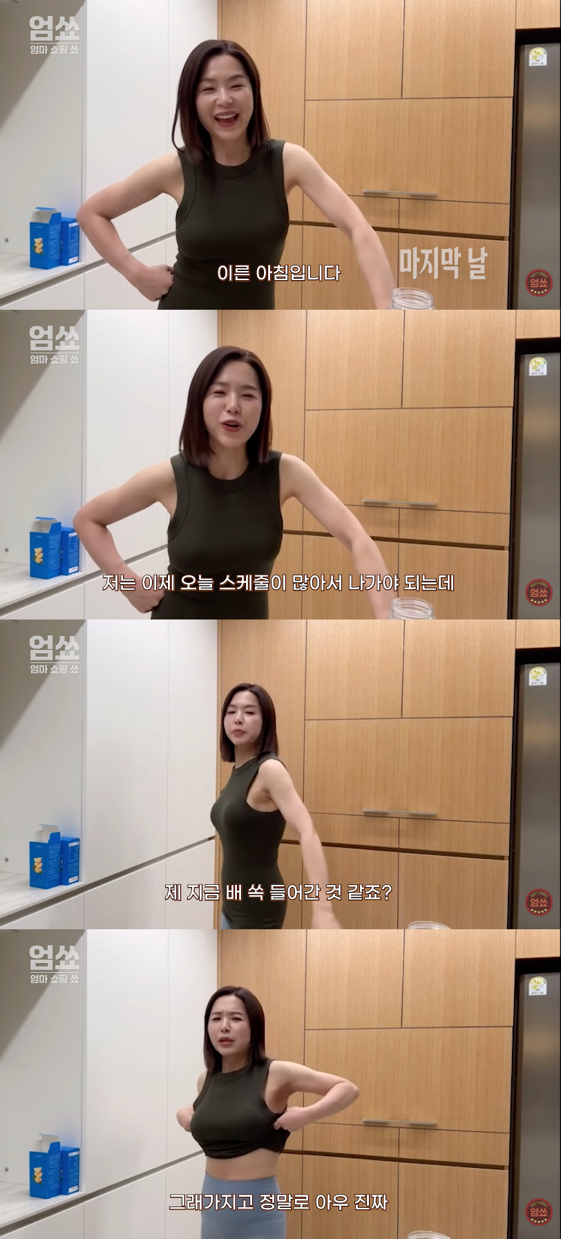 이후 스케줄을 앞두고 민소매 운동복 차림으로 등장한 김지선은 "클렌즈 주스를 5일 했더니 지금 배가 쏙 들어간 것 같지 않냐"고 말하며 겉옷을 들어 올렸다. 김지선은 55세라는 나이가 무색할 만큼 군살 없이 탄탄한 복부 라인을 드러내며 놀라움을 자아냈다.