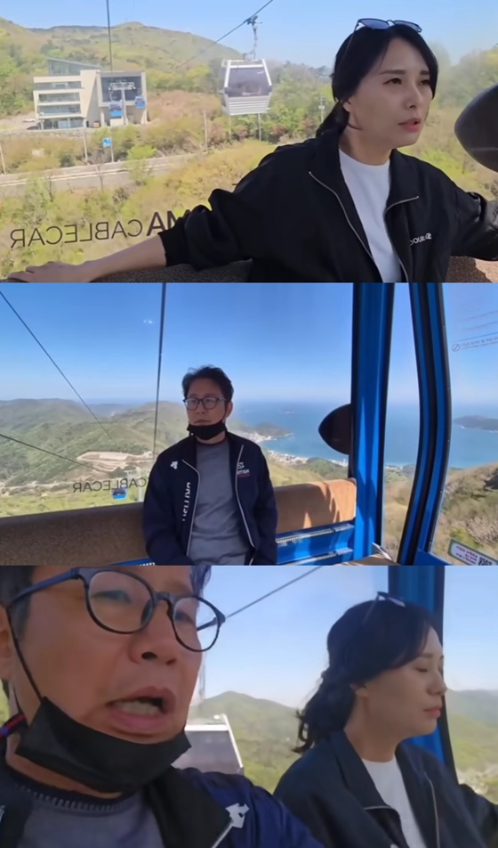 정영림은 "어제 묵었던 숙박 시설에서 케이블카 1인 무료 체험권을 줬다. 거기에 (동반)1인 할인 3000원을 해준다고 했다"며 고소공포증이 있음에도 케이블카를 타려고 했던 이유를 밝혔다.