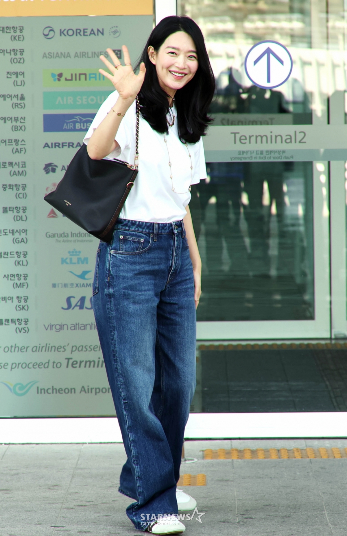 배우 신민아가 청바지에 흰 티셔츠 만으로도 완벽한 미모를 자랑했다.