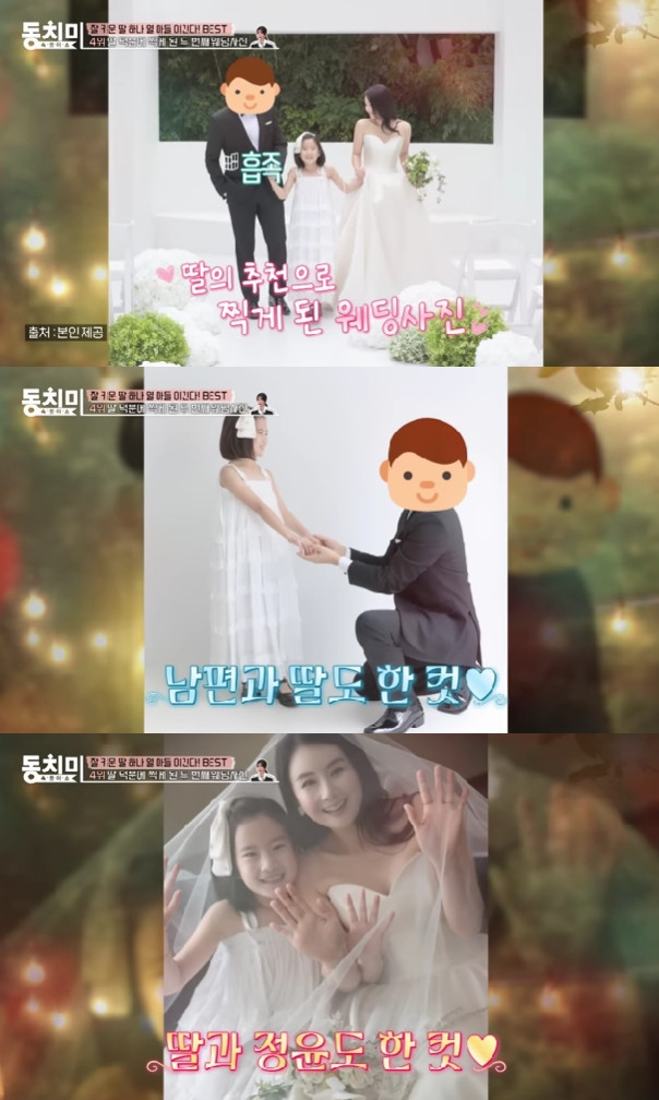 최근 재혼 소식을 밝힌 최정윤은 "결혼식을 올려야겠다는 생각은 해본 적 없고, 남편도 마찬가지였다. 혼인신고만 하고 살고 있는데, 11살 된 딸이 결혼식을 올려야 한다고 이야기했다. 엄마는 괜찮다고 했더니 사진이라도 찍자고 하더라. 아빠를 너무 좋아한다"고 말했다.