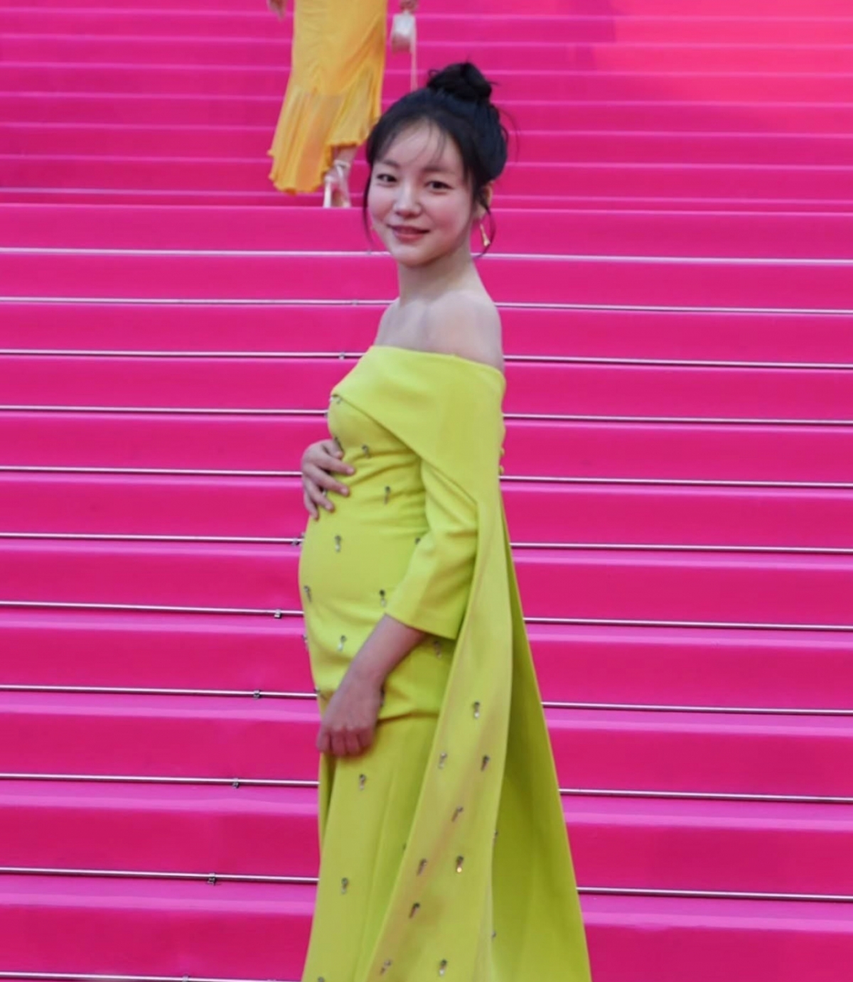 이에 문지인은 세계 무대이자, 칸 시리즈의 꽃 '핑크 카펫'을 당당히 밟았다. 특히 그는 임신 중인 만큼 드레스를 입고 아름다운 'D라인'을 뽐내 감탄을 더했다.