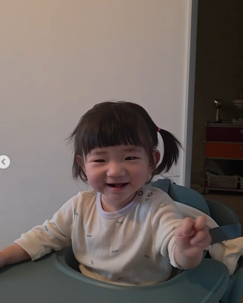 손담비는 27일 자신의 개인계정에 딸 해이 양이 유아 의자에 앉아 춤추는 모습을 공개했다.