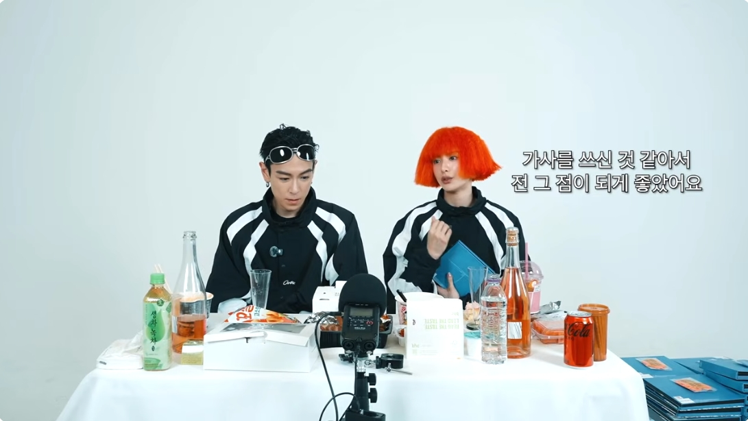 이날 탑과 나나는 함께 똑같은 옷을 맞춰입고 유튜브 방송을 진행했다. 빨간 머리 가방을 쓴 나나의 모습이 시선을 강탈한 가운데 두 사람은 배달 음식과 편의점 음식 과자 등을 준비해서 먹으면서 탑의 앨범을 함께 감상했다. 커피와 와인까지 준비하고 본격 방송을 준비한 두 사람이었지만 서로 어색한 듯 독특한 콘셉트로 방송을 이어갔다.