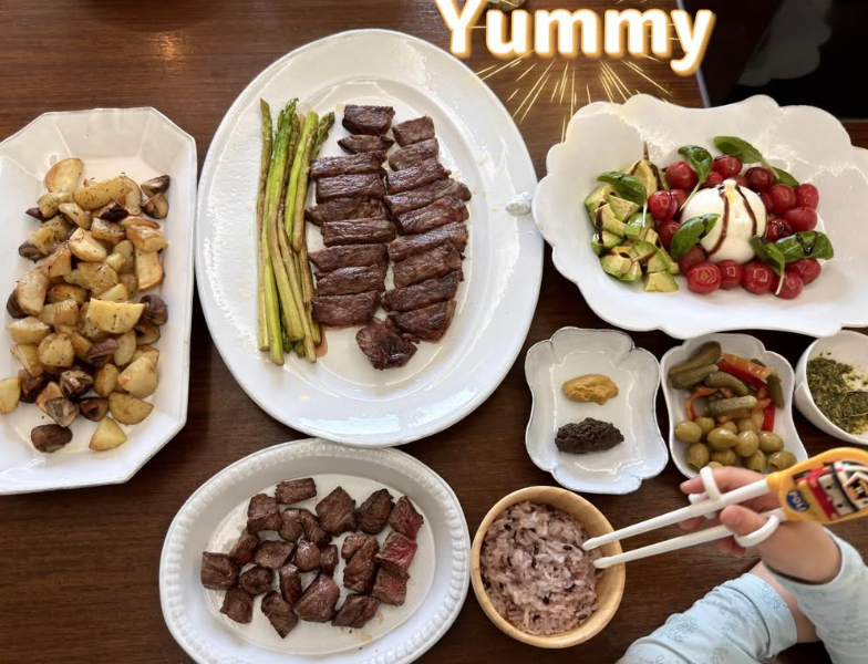 공개된 사진에는 손예진이 직접 완성한 음식들이 담겼다. 스테이크와 야채 구이, 수제 피자 등이 담기며 시선을 모은다. 여기에 4살 아들을 위한 교정용 젓가락도 포착됐다.