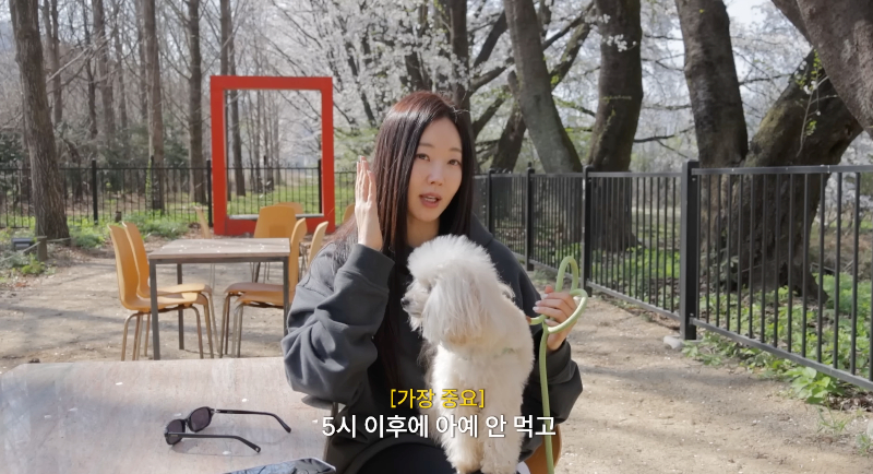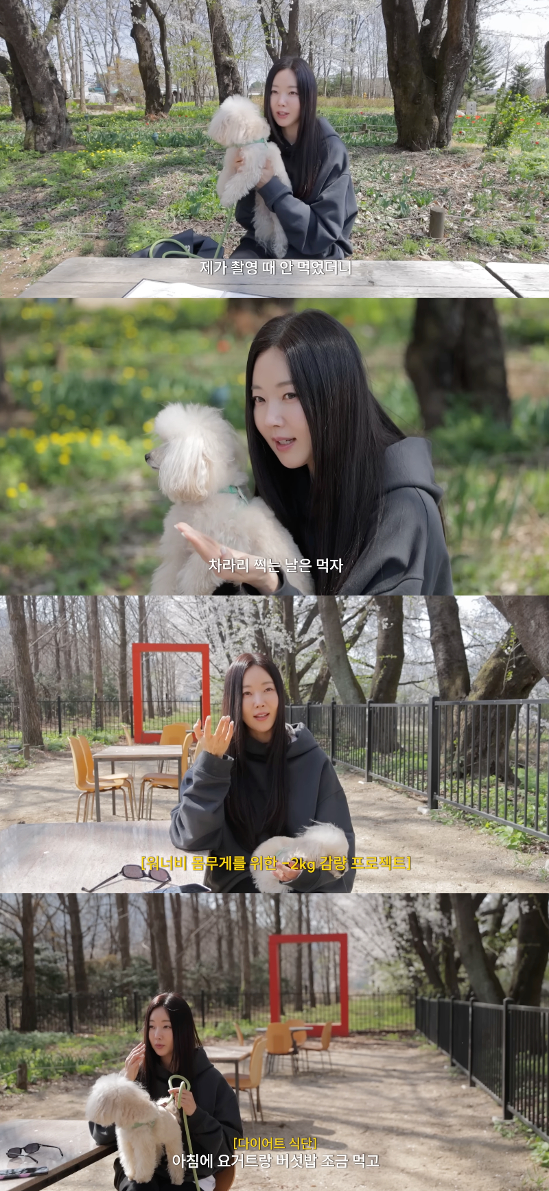 공개된 영상에서 김사랑은 반려견 아이와 함께 벚꽃을 보러 나섰다. 김사랑은 음식을 주문하며 "촬영 때 안 먹었더니 너무 에너지가 떨어지고 두뇌가 안 돌아가더라"라며 "그래서 어제는 진짜 조금만 먹고, 차라리 찍는 날은 먹자 했다. 오늘은 아침에 치즈김밥을 먹었다"고 말했다.