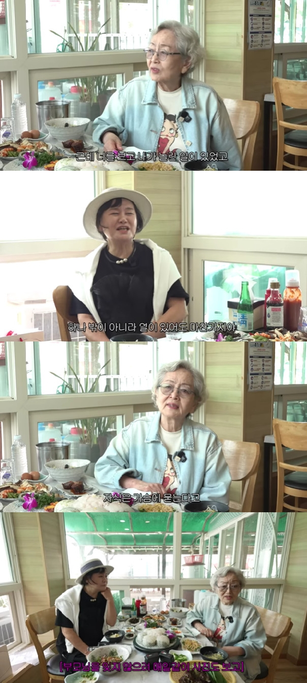 김영옥은 "자식은 가슴에 묻는다고 부모하고 다르더라. 부모도 미치겠더니 희미해졌다. 잊지 않으려고 매일 같이 사진도 보고 인사도 하고 그런다"고 했고, 박원숙은 "지금은 이 순간순간이 너무 소중하다"라고 미소 지었다.