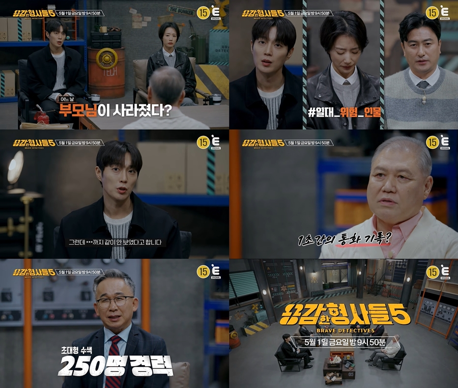 5월 1일 오후 9시 50분 방송되는 티캐스트 E채널 '용감한 형사들5'에서는 윤외출 전 경무관과 김진수 경감이 출연해 노부부 실종 살인 사건 수사 일지를 전한다.