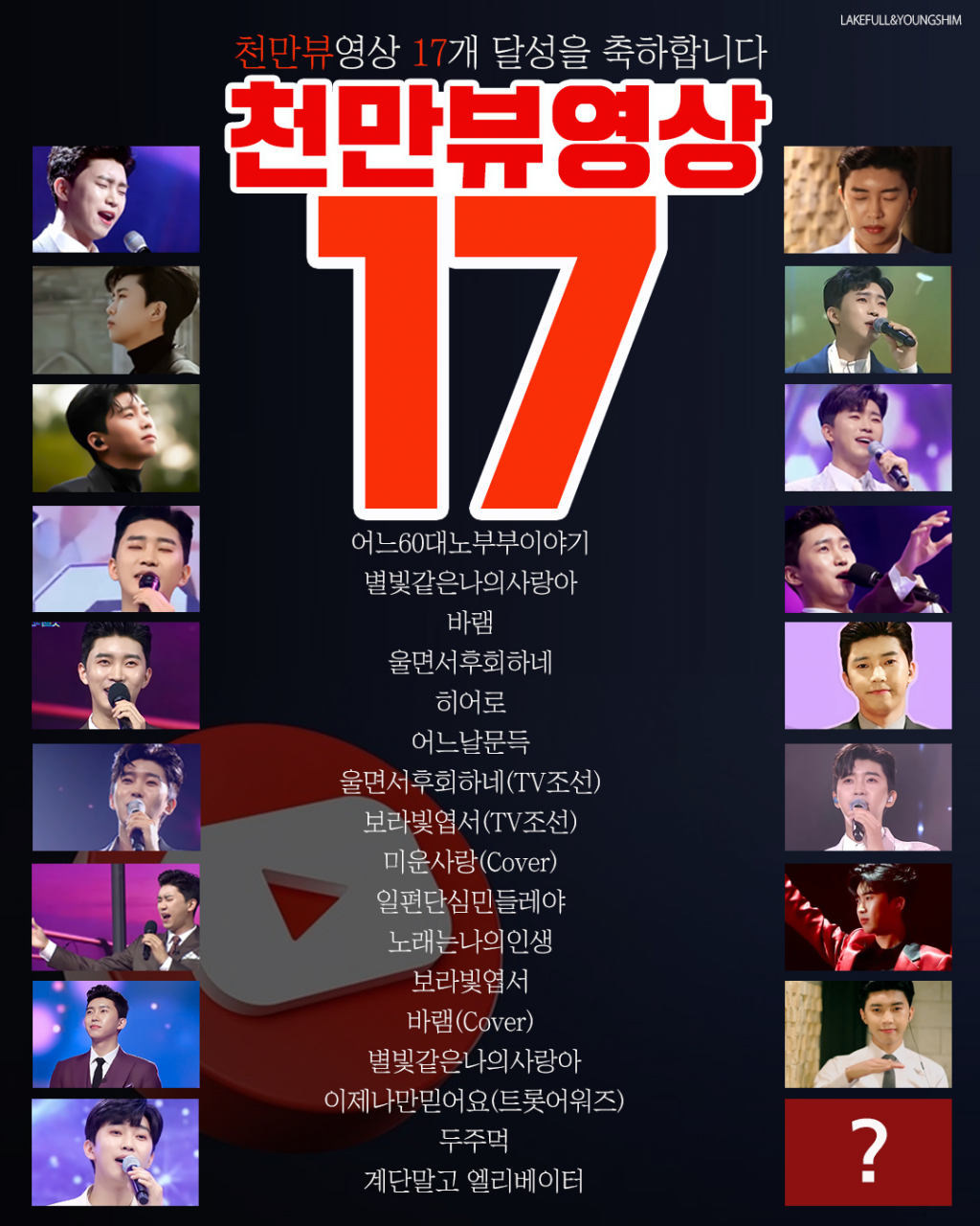 임영웅의 새로운 신화를 여는 천만뷰 영상 17개는 아래와 같다.