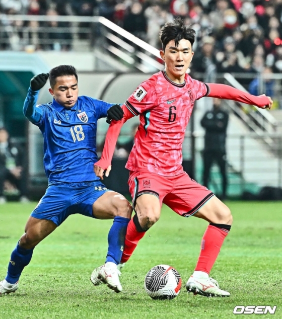 지난 21일 서울월드컵경기장에서 펼쳐진 2026 북중미 월드컵 아시아 지역 2차예선 태국과의 홈 경기에서도 한국은 후방 빌드 업에서 불안한 모습을 보였다. 태국은 과거의 태국이 아니었다. 그들은 예전과 달리 체격과 몸싸움이라는 측면에서 적어도 전반 초반에는 한국과 대등한 상황을 연출했다. 선취 골은 한국이 넣었지만 빠른 역습에 능한 태국에 동점골을 내줘 1-1 아쉬운 무승부를 기록했다.